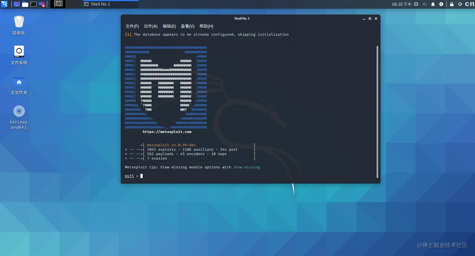 Metasploit Framework(MSF)是一款开源安全漏洞检测工具,他带有数千个已知的软件漏洞,目前人在持续更新。Metasploit可以用来信息收集、漏洞探测、漏洞利用等渗透测试的全流程,被安全社区冠以“可以黑掉整个宇宙”之名。在普通的Linux系统下需要自行下载安装,而Kali中自带此工具,在此工具中,msfconsole是整个框架中最受欢迎的模块,当然也是最强大的一个模块,接下来我们会详细讲解此模块。