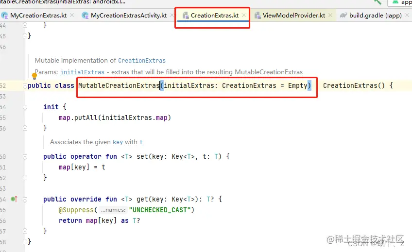 多了一个参数CreationExtras,这就是我们今天要讲的创建机制提供的扩展。可以通过这个扩展抽象类来完成一些数据的传递