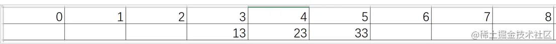 当插入的数据为33时计算的位置为3,可是位置3已经被占领了并且4也被占领了,但是位置5没有被占领所以插入数据33就会占领位置5,那么这里的图片就如下: