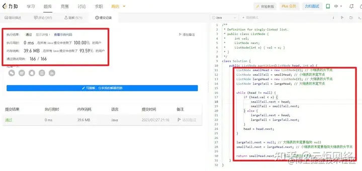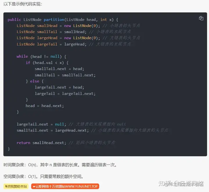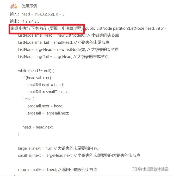返回小链表的头节点,即 smallHead.next,即返回链表 1 -> 2 -> 2 -> 4 -> 3 -> 5 -> null。