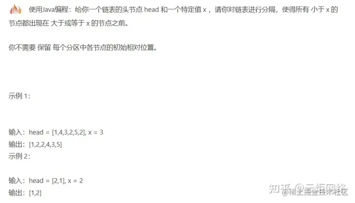 另一个例子是,给定一个链表,要求将链表分为三个部分,其中一个部分包含小于 x 的节点,另一个部分包含等于 x 的节点,最后一个部分包含大于 x 的节点。可以使用这个函数来实现这个功能。