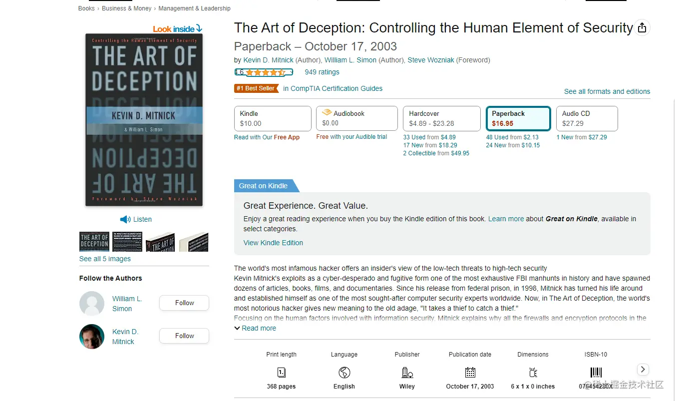 • 出版图书,《反入侵的艺术》:四个志同道合的伙伴用口袋大小的计算机在拉斯维加大把挣钱。一个无聊的加拿大年轻人居然能顺风顺水地非法访问南部的一家银行。几个毛头小子受到蛊惑,被本拉登手下的恐怖分子征召去攻击LockheedMaritn公司!这些都是真实故事!都是作者Kevin D. Mitnick与黑客面谈后,根据他们的真实经历撰写的。事实上,《反入侵的艺术——黑客入侵背后的真实故事》中多个故事的主人公都对传奇大师Mitnick顶礼膜拜,视其为偶像和英雄,所以也愿意推心置腹,道出埋在心底多年的隐秘故事。当然,“社会工程学”一词也是由此书提出。
