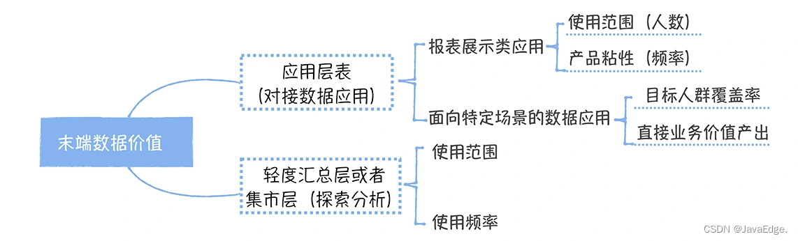 如末端数据是一张应用层的表,它对接的是一个数据报表,那衡量这数据价值主要看报表的使用范围和使用频率。