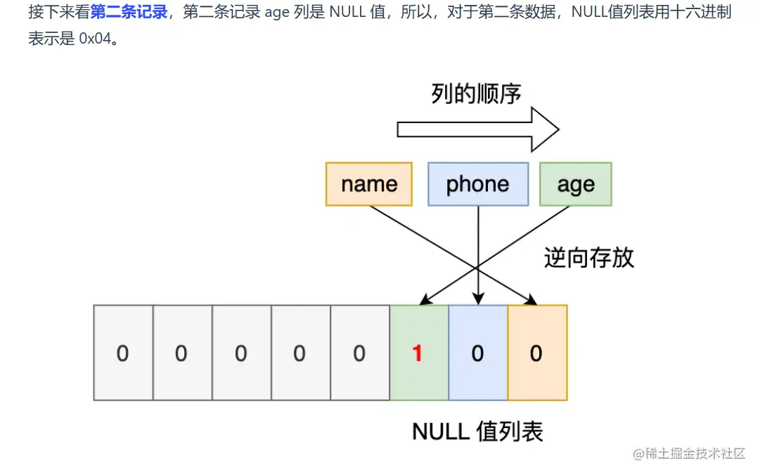 同样的道理, NULL 值列表的信息也需要逆序存放。