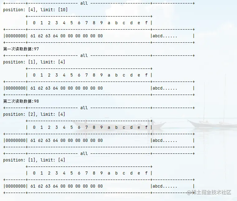 在Bytebuffer流程中有一个读取数据,使用get()方法会使得position位置后移,limit位置不会发生变化