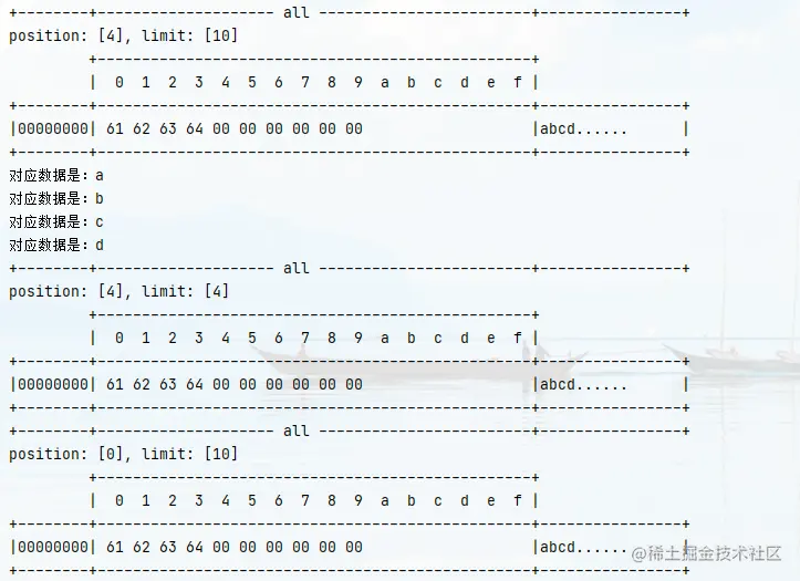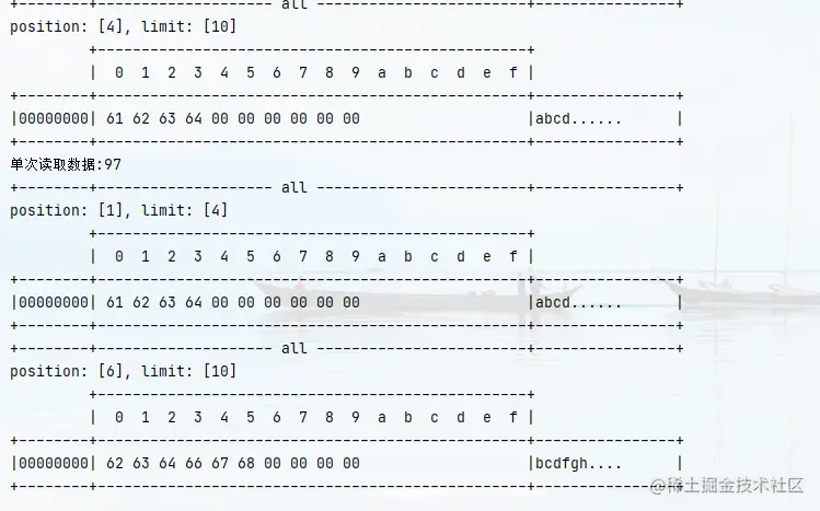 ByteBuffer在编写过程中不仅仅只有以上的单个方法的使用,可能会涉及到多个场景的应用,及多个数据场景结合使用,因此在使用的时候,需要根据具体业务具体操作。