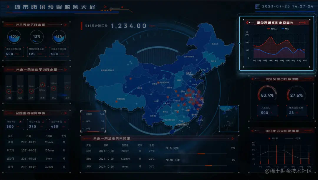 这种可视化呈现不仅可以更好地帮助管理人员理解和解释数据,还能够帮助管理人员找到数据中的规律和趋势。在汛期监测中,通过对这些气象信息的把控,从而帮助人们更好地认识和应对汛期天气的挑战。
