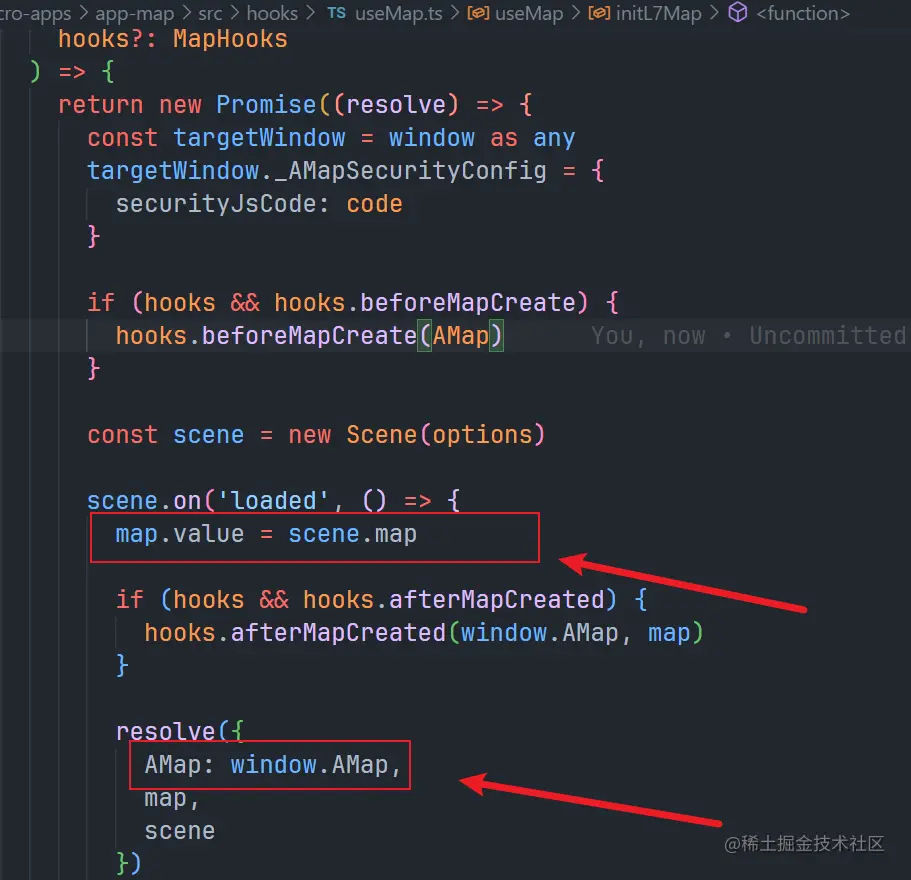 通过 L7 的创建 scene,监听 loaded 事件,promise返回 AMap 以及 map 示例等等。