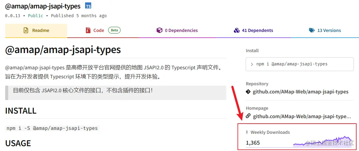 虽然高德官方自己为 typescript 类型推断添加了一个 npm 包,里面包含了大部分的 AMap 方法声明,但从下载量就可以看得出这东西其实不太好用。