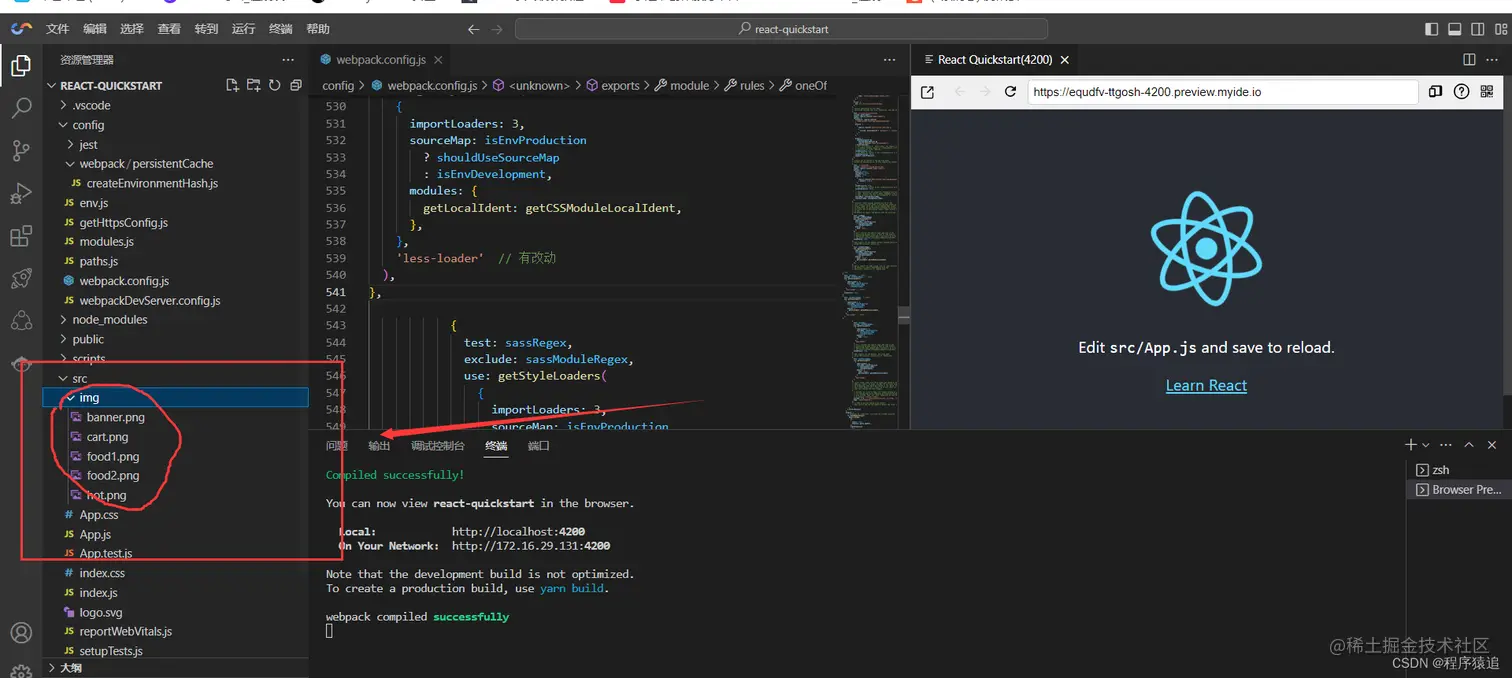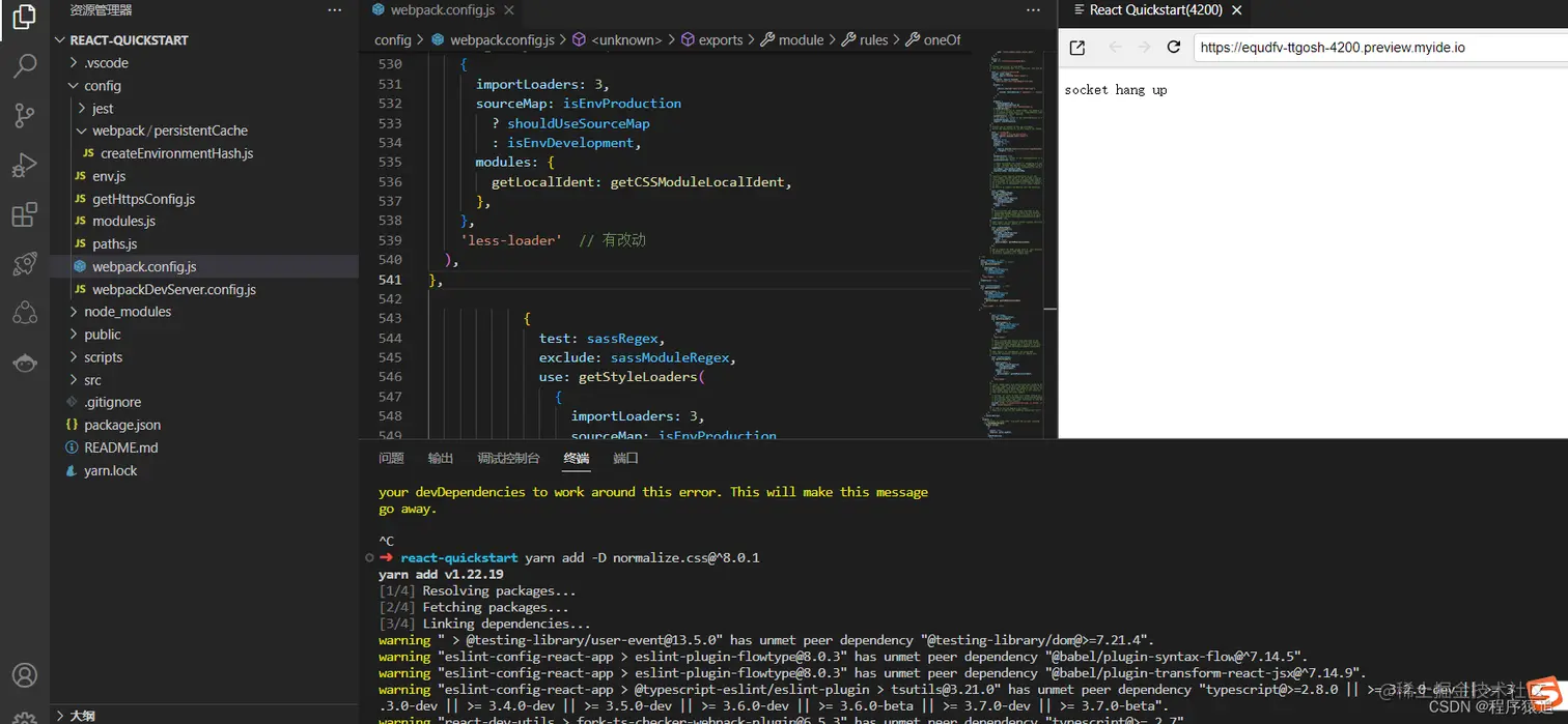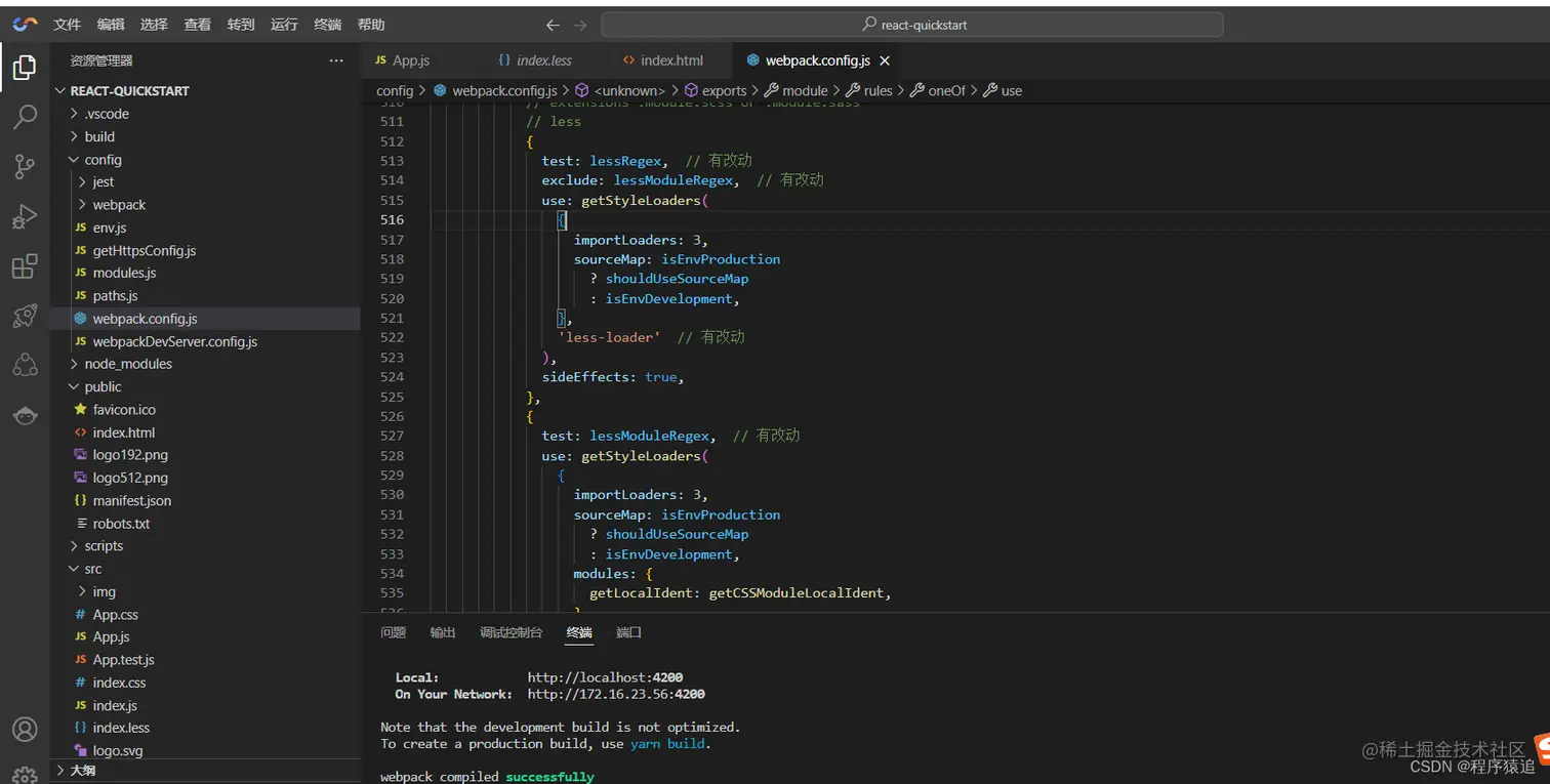 注意:在webpack.config.js中进行配置,这样进行配置需要暴露出React的config配置文件,警告该操作不可逆