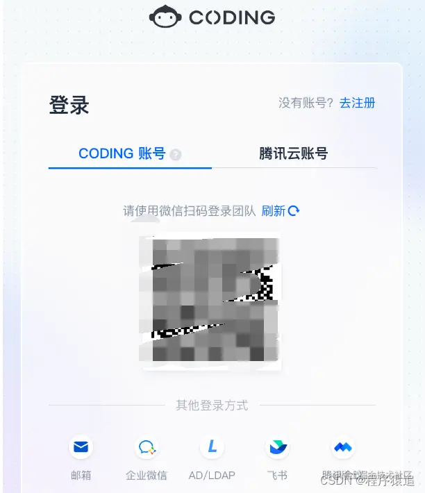 输入域名之后,会出现以下界面 ,选择你的 CODING 账号方式,进行扫码登录。