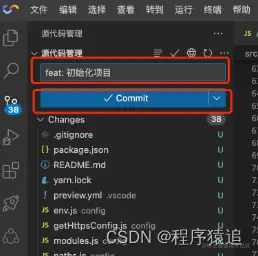 在左边功能菜单区找到“源代码管理”,使用 git init 进行仓库初始化。