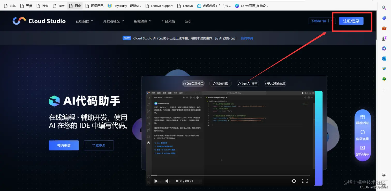 1、注册 Cloud Studio