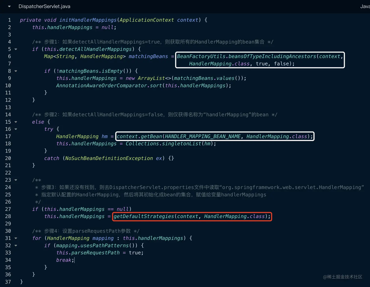 对于Spring MVC来说,最核心的一个类就是DispatcherServlet,它负责请求的行为流转。那么在Servlet的初始化阶段,会调用init()方法进行初始化操作,在DispatcherServlet中并没有去实现init()这个方法,而是由其父类HttpServletBean负责实现的。