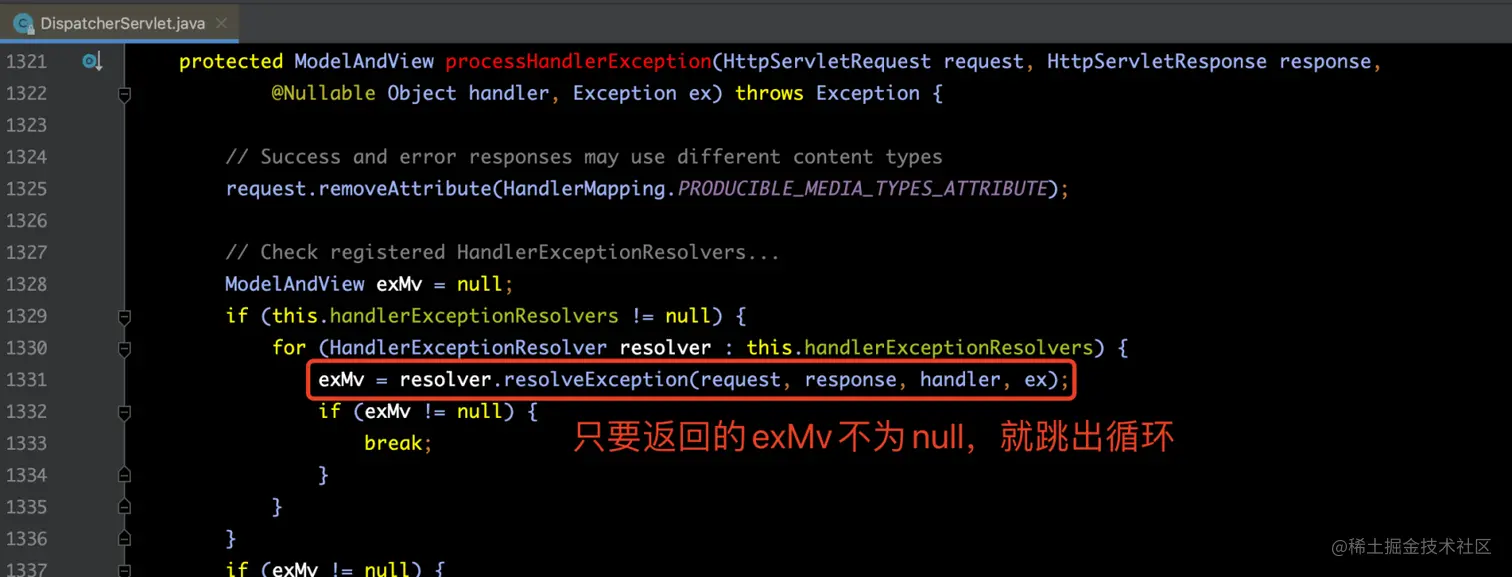 mv = processHandlerException(request, response, handler, exception);