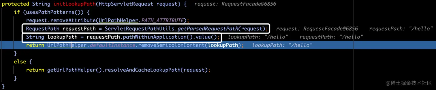 Object handler = (mappedHandler != null ? mappedHandler.getHandler() : null);