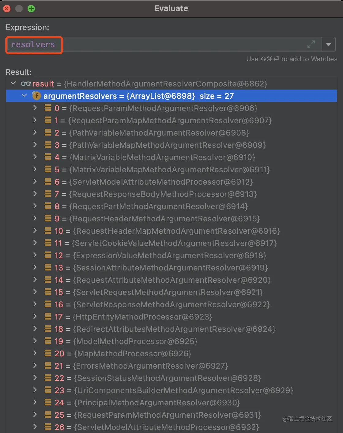 那么,默认的HandlerMethodReturnValueHandler解析器一共有15个,Spring会从头开始遍历这些handler,如果找到匹配了,则直接返回,不用再遍历对比其他handler了。具体如下所示: