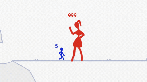 素材开头一般为角色经历某些挫折从很大的数值变成数值1,后续战胜敌人后可以使自己的数值和高塔层数提升,但是操作过程中大部分是失败结局,以此激发用户逆反心理。