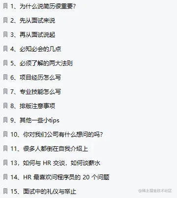 - 不多bb,下面我们先来看面试指南主要内容: