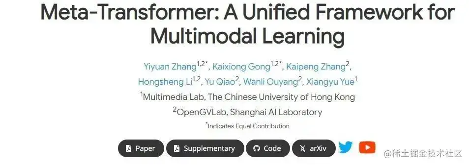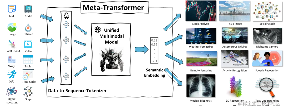 Meta-Transformer 框架下统一的多模态感知,能够处理 12 种不同的模态