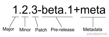 除了 X.Y.Z 这样的标准版本号,还有 Pre-release 和 Metadata 来描述项目的测试版本,关于 semver 规范更多的内容,可以参考juejin.cn/post/712224… 。