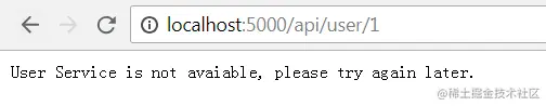 Zuul自身就带有Hystrix,但是它监控的粒度是微服务级别,而不是某个API,当某个API不可用时,会统一抛500错误码的异常页。我们可以为Zuul添加回退,以实现更友好的返回信息。实现也很简单,只需要实现FallbackProvider接口即可。这里要注意的是,对于Edgware之前的版本(即Dalston及更低版本)需要实现的是ZuulFallbackProvider接口,而Edgware及之后的版本要实现的是FallbackProvider接口。因为FallbackProvider是ZuulFallbackProvider的子接口,而它的好处就是多了一个接口可以获取可能造成回退的原因,具体可以参考这一篇文章:《Spring Cloud Edgware新特性之八:Zuul回退的改进》。下面是本示例中访问user-service接口(user-service被我手动关闭)后的返回结果: