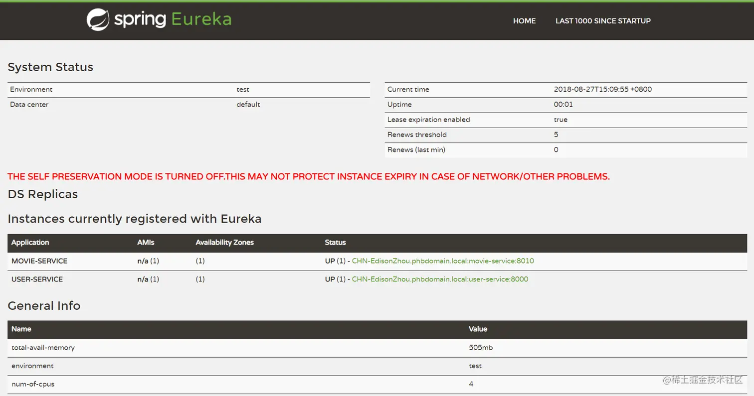 enableSelfPreservation: false # 本地调试环境下关闭自我保护机制