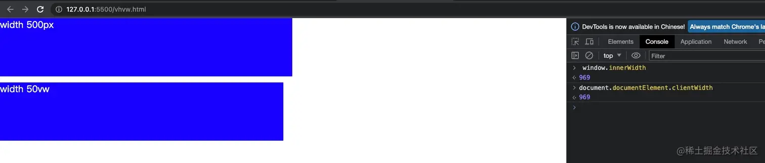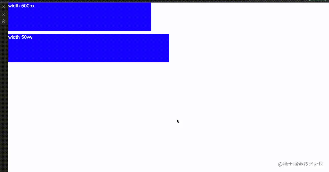 这里我们就解释了上面设置vw的元素没有被ctrl缩放影响: 缩放之后视口比例不变,因此div宽度不变。