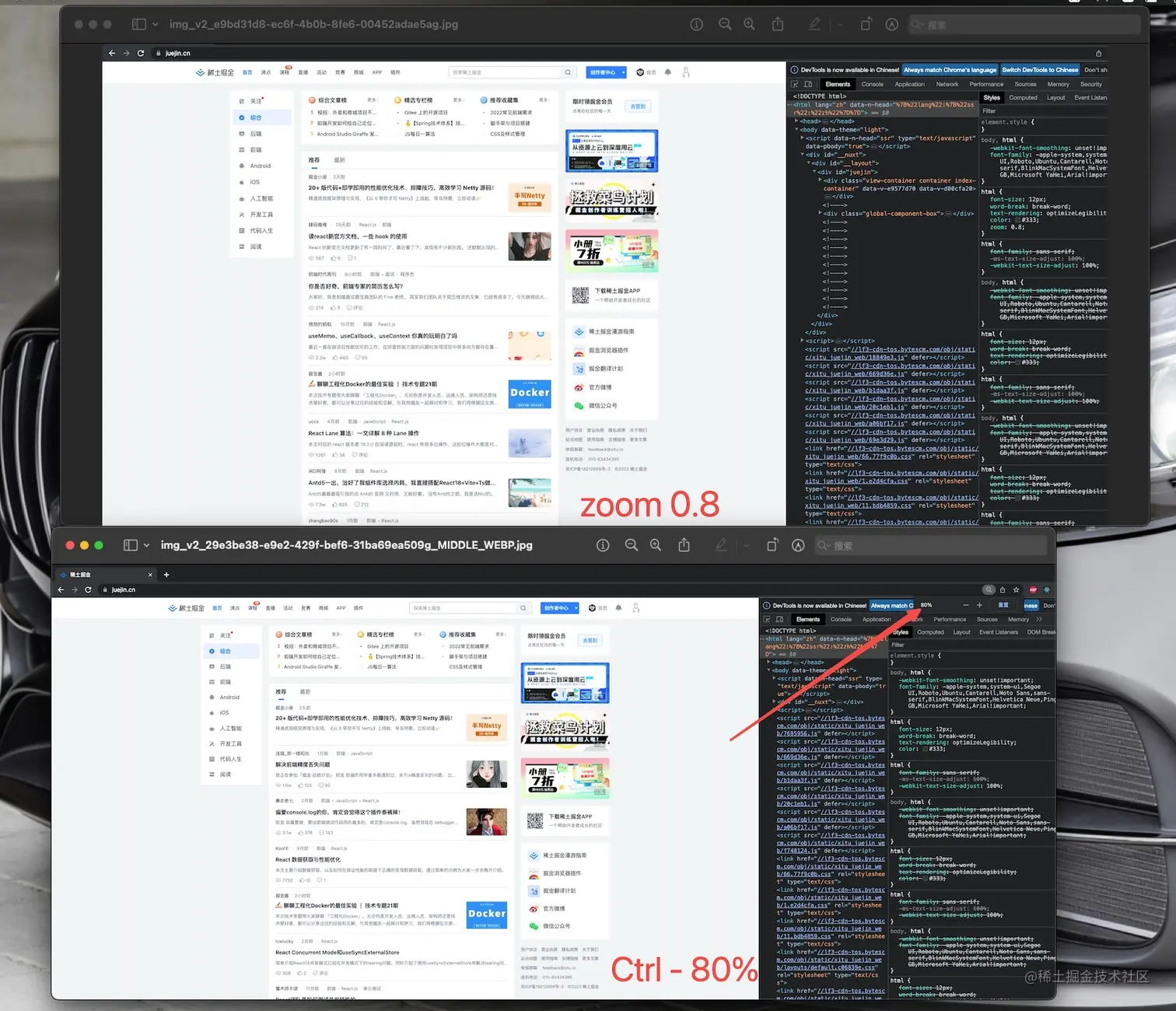 按照这个猜想,那zoom0.8 = ctrl - 80%