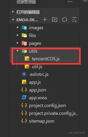 5. 打开路径utils/tencentCOS.js方件,修改配置信息: