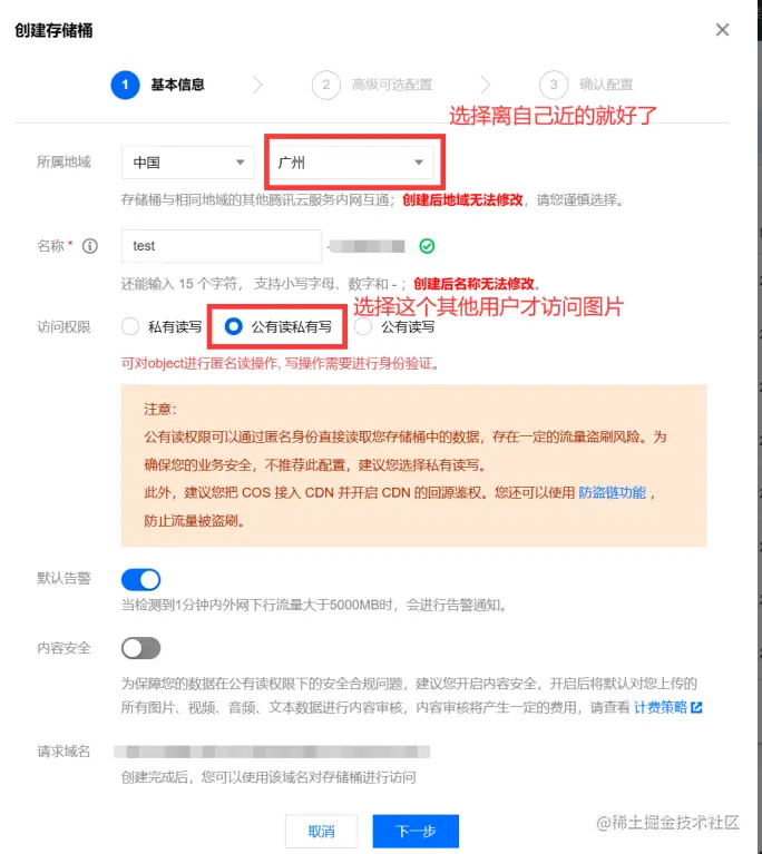 1. 注册腾讯云COS对象存储(官方地址,新用户可免费试用6个月存储;下行流量需收费,计费文档,倒也不是很贵,我目前用户量很低,一个月大概几毛钱)