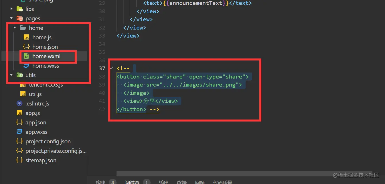 2. 关闭小程序分享(修改代码):