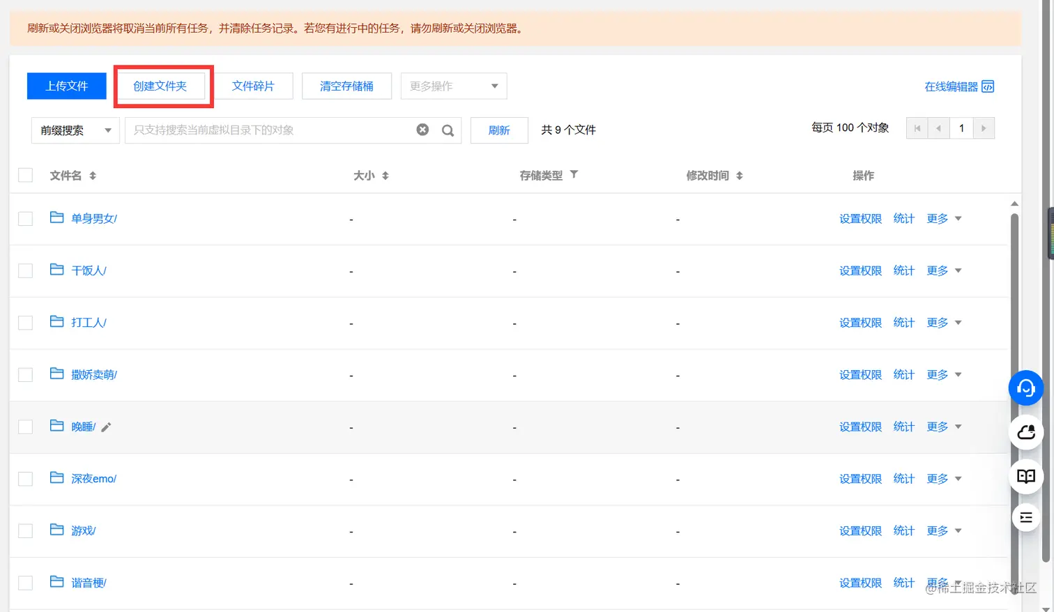 ⑨ 返回对象存储页面,给存储桶进行授权管理