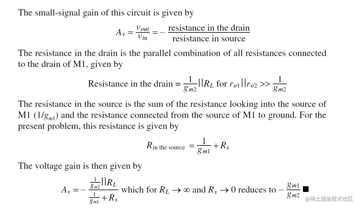 The small-signal gain of the common-source amplifier: