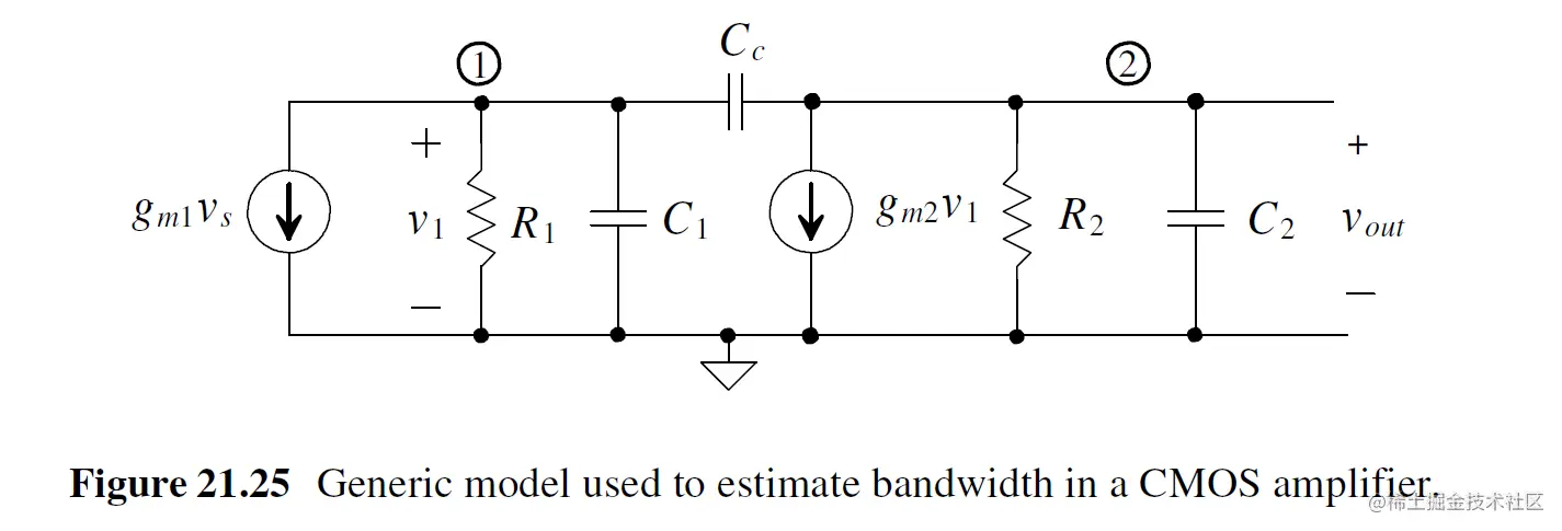 C1为M2 gate电容, C2为 M2的输出电容, Cc为M2的gate和drain之间加入miller电容
