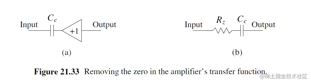 消除右零点的方法: 1, 加入zero-nulling resistor Rz; 2, 只允许Output经过Cc往Input, 而不能input通过Cc往Output
