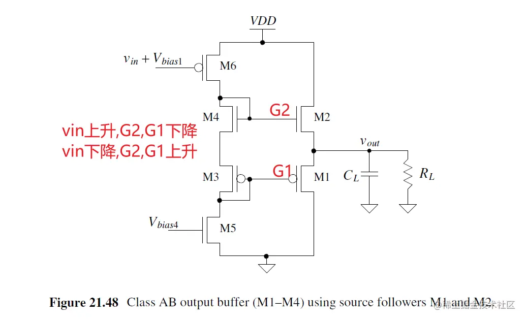 这个buffer的主要问题是G2_max=VDD, G1_min=VSS. 因此Vout_max=VDD-Vthn, Vout_min=Vthp. Vout输出范围受限.