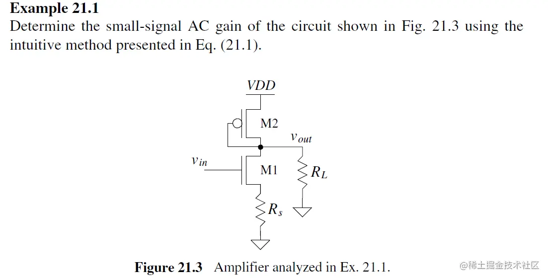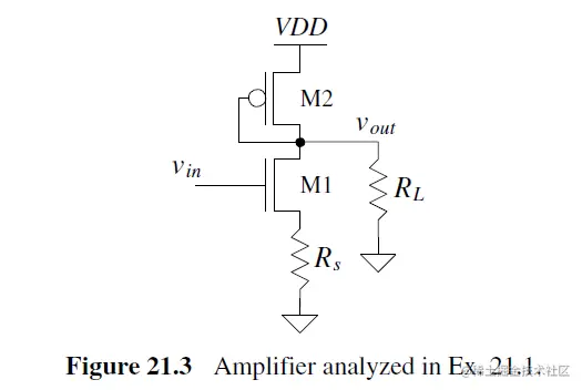 The CS amplifier in Fig. 21.17 is called a class A amplifier because, for proper operation, both MOSFETs are always conducting a current. 两个MOS 一直on 称为Class-A.