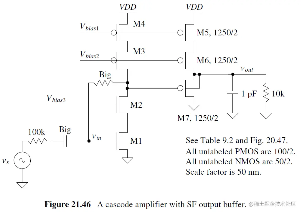例如下图中为casecode添加PMOS M7 buffer