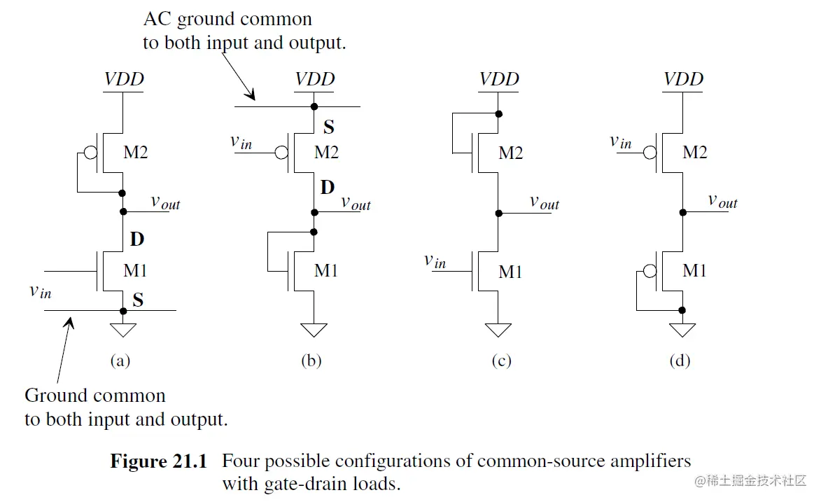 这一节以gate-drain-connected MOSFET作为负载