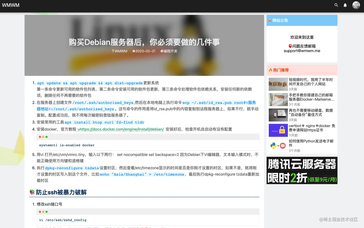 进入/etc/fail2ban目录,在该目录下,创建apt update && apt install fail2banjail.local文件,并写入以下内容启动fail2ban[sshd] # To use more aggressive sshd modes set filter parameter "mode" in jail.local: # normal (default), ddos, extra or aggressive (combines all). # See "tests/files/logs/sshd" or "filter.d/sshd.conf" for usage example and details. #mode = normal enabled = true port = [ssh端口号] filter = sshd logpath = /var/log/auth.log maxretry = 5 # 最大尝试次数 bantime = -1 # 封禁时间,单位s。-1为永久封禁查看fail2ban运行状态systemctl start fail2ban # 查看状态 systemctl status fail2ban