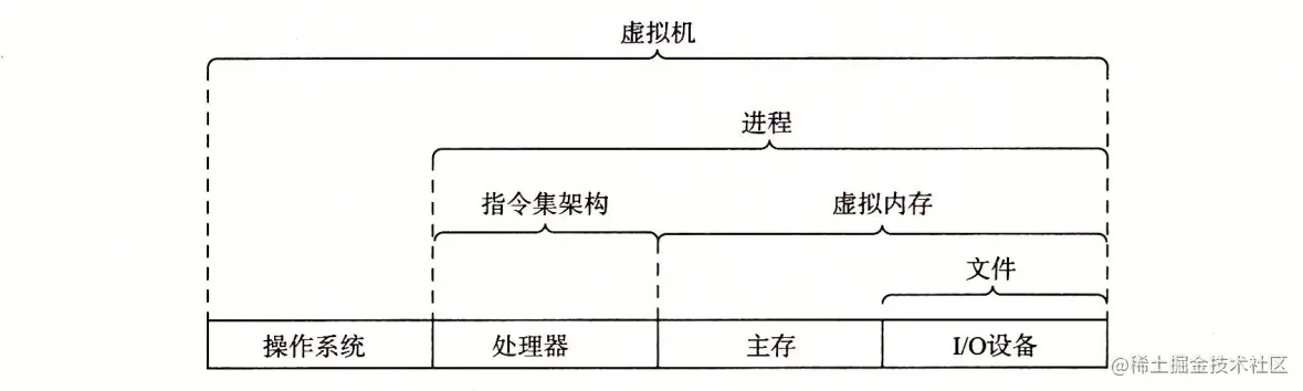 - 我们再增加一个新的抽象:虚拟机,它提供对整个计算机的抽象,包括操作系统、处理器和程序。虚拟机的思想是 IBM 在20世纪60年代提出来的,但是最近才显示出其管理计算机方式上的优势,因为一些计算机必须能够运行为不同的操作系统(例如, Mierosoft Windows , MacOS 和 Linux )或同一操作系统的不同版本设计的程序。