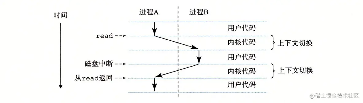 从一个进程到另一个进程的转换是由操作系统内核( kernel )管理的。
