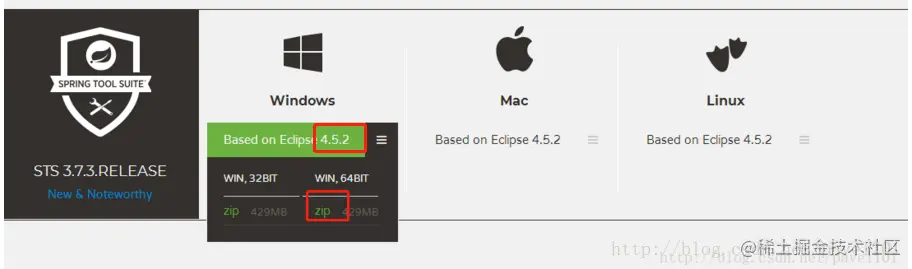 点击官网,找到eclipse版本(我的是 4.5.2)对应的文件,如下图,