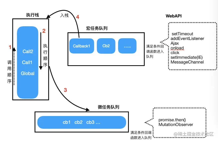 重复执行事件循环: 上述步骤会不断重复,构成了事件循环的执行顺序。