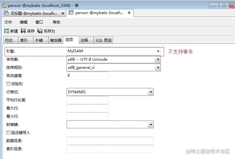 查看数据库引擎,发现引擎是MyISAM! 瞬间爆炸!!!!