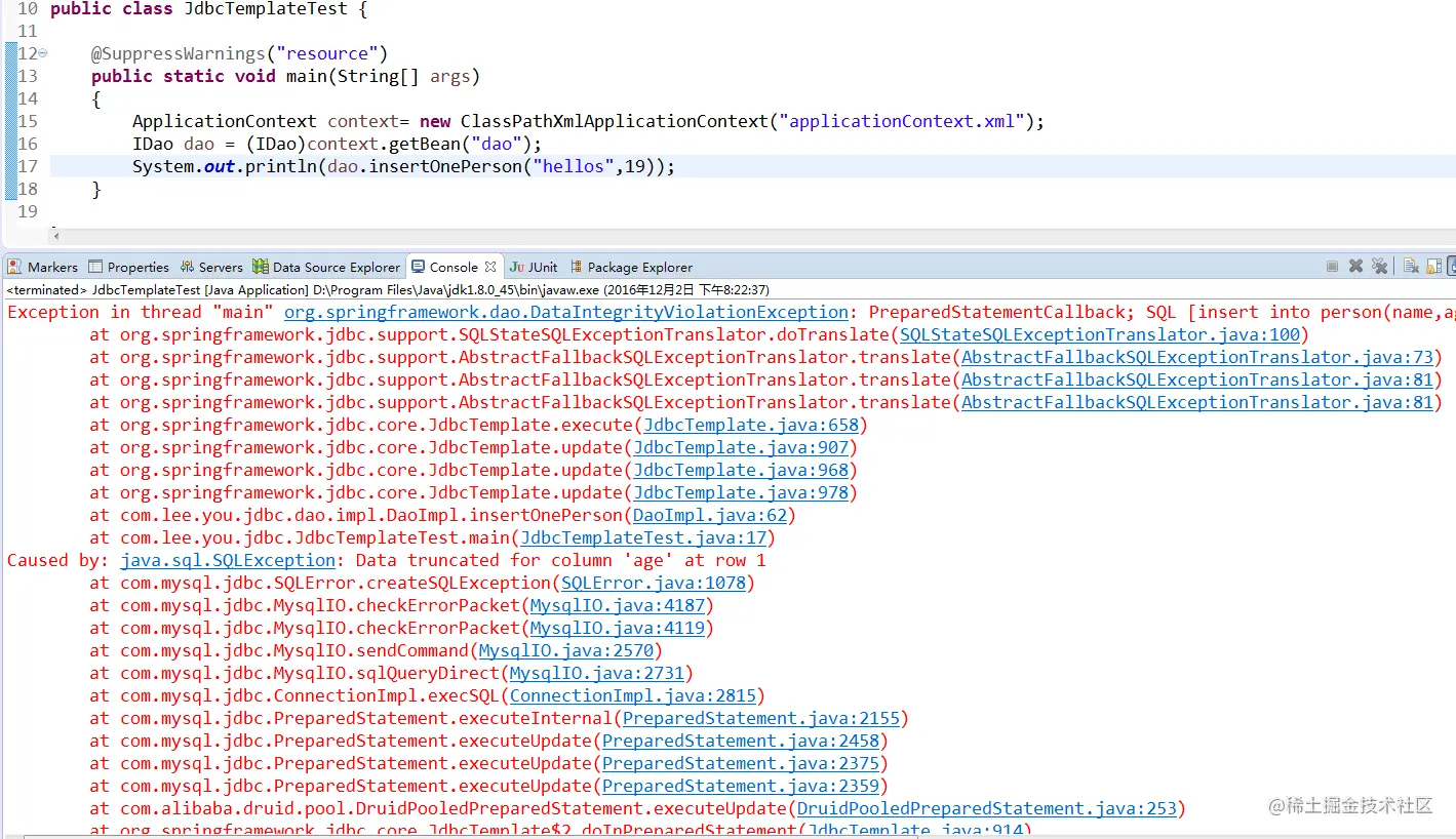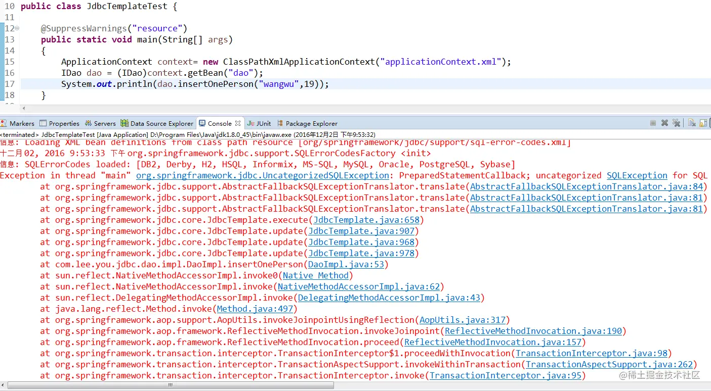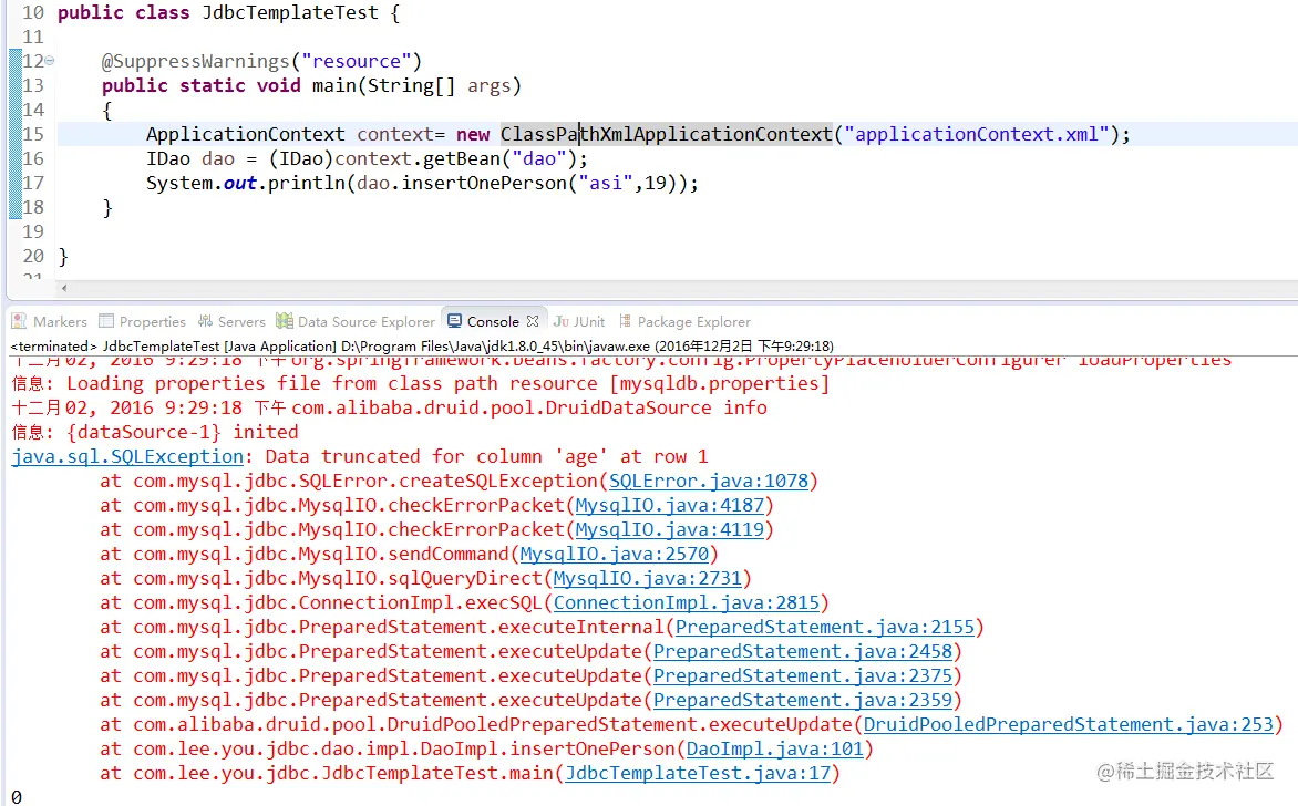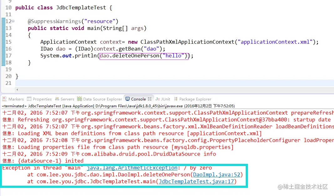 先来验证下,当前jdbcTempalte是否是自动提交的,如何验证了,我可以在jdbcTemplate执行完之后抛出一个异常,代码如下