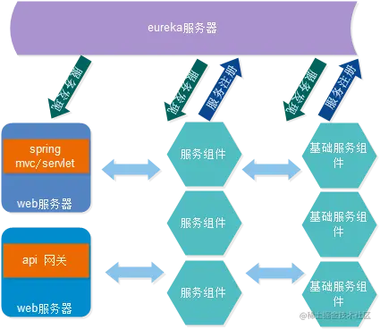 所有的服务端及访问服务的客户端都需要连接到注册管理器(eureka服务器)。服务在启动时会自动注册自己到eureka服务器,每一个服务都有一个名字,这个名字会被注册到eureka服务器。使用服务的一方只需要使用该名字加上方法名就可以调用到服务。