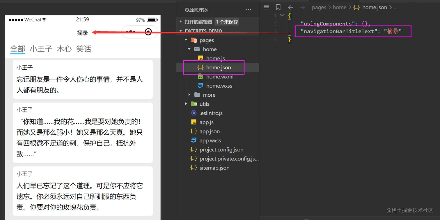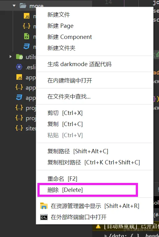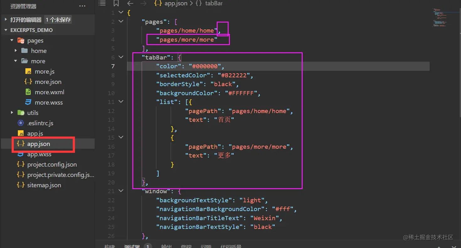 7. 删除"更多"面面之后,删除app.json中的数据(如果没有删除more页面,则跳过)